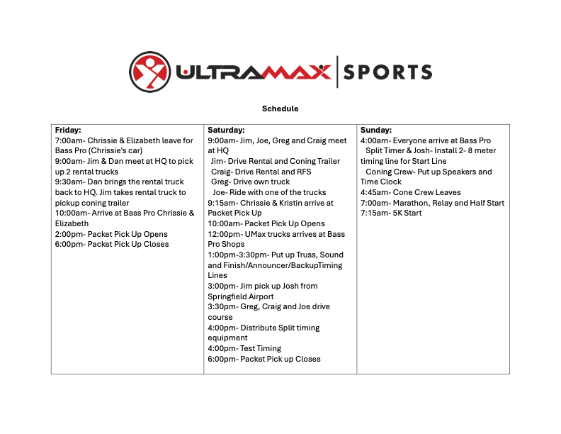 Split Timing Checklist, Safety Tips, Equipment List and Detailed Split Timing Locations