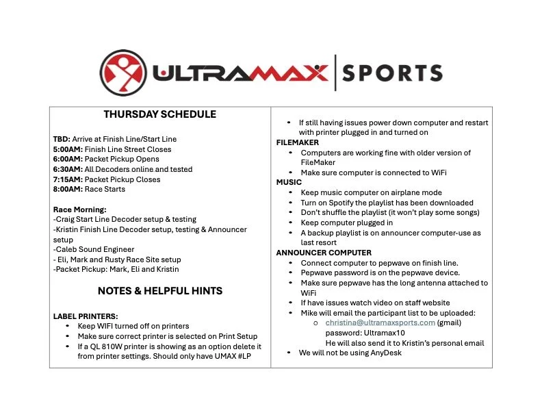 If everyone could take some time and refresh your skills by watching these videos. At Turkey Trot Springfield it’s helpful that everyone knows how to do a little bit of everything. The more everyone knows the less chance for potential issues and the smoother the event will go.