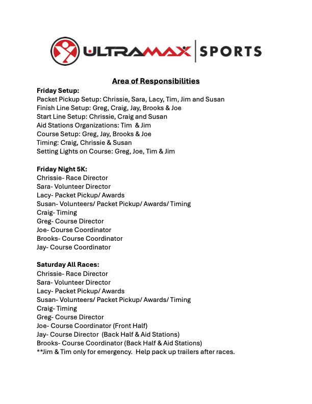 On the map you will find: Start/Finish Locations, All 5 Courses, Aid Stations, Volunteers, and Mile Markers